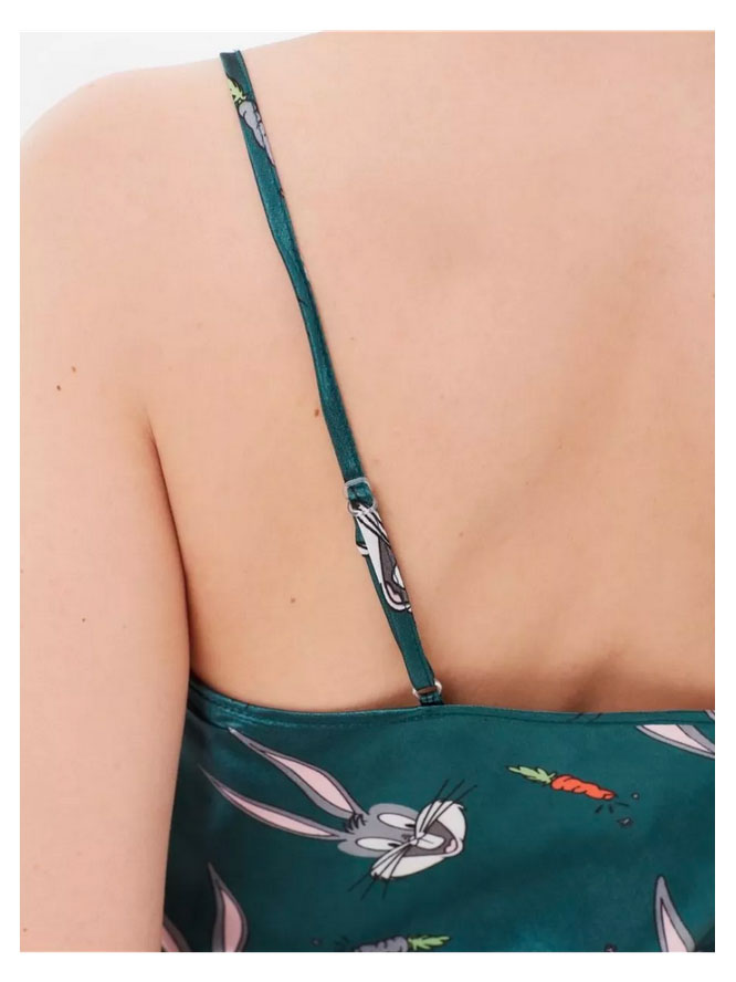 Пижама шелковая зеленая с зайцами топ с шортами